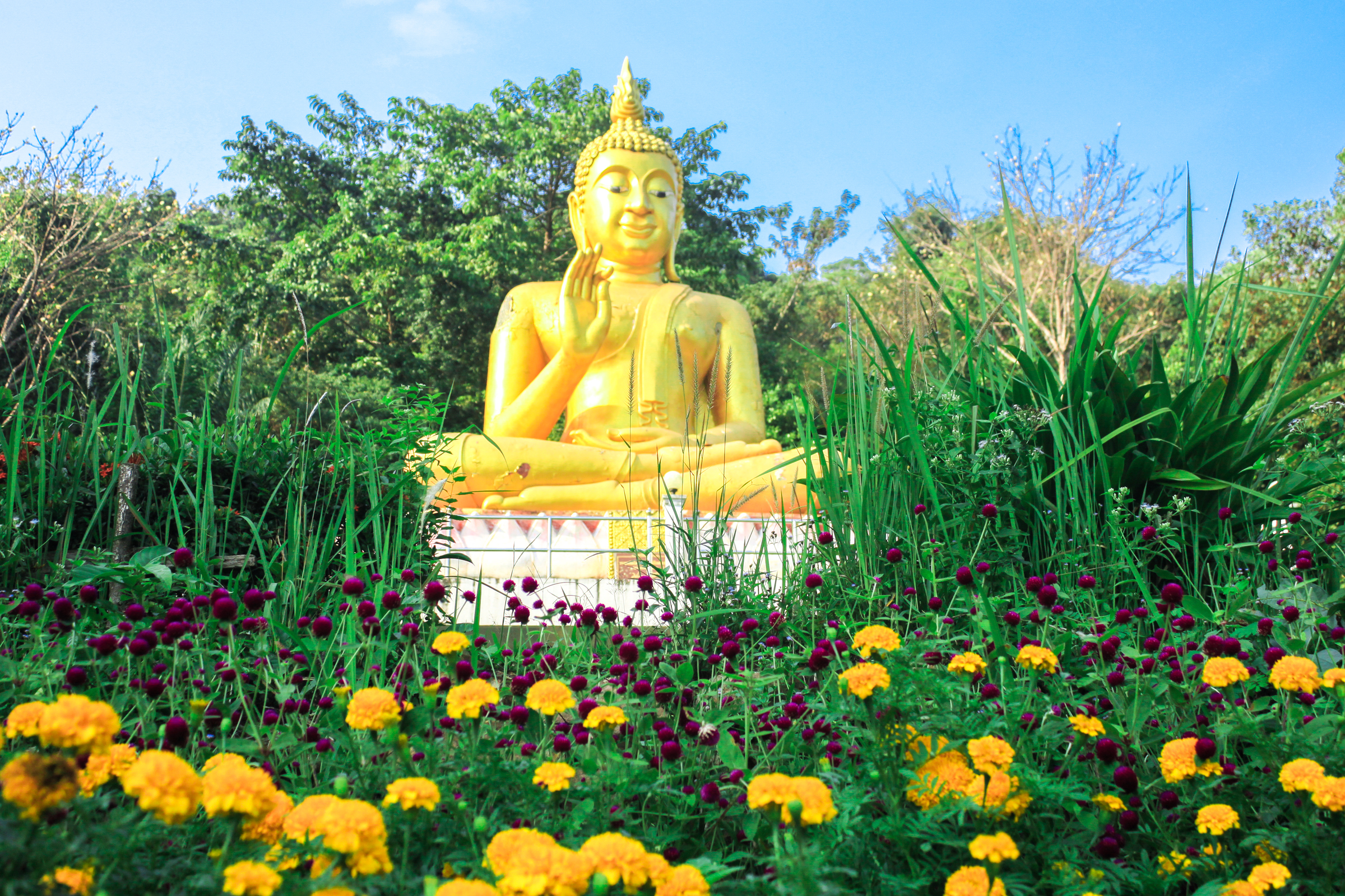 สักการะพระพุทธรูปองค์ใหญ่ที่ประดิษฐานท่ามกลางหุบเขา พร้อมด้วยจุดชมวิว อ.คลองใหญ่ แบบพาโนรามา |